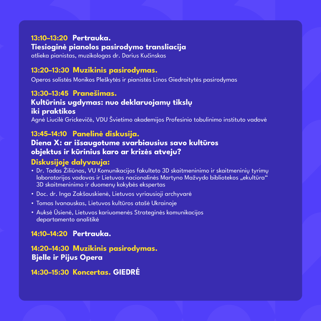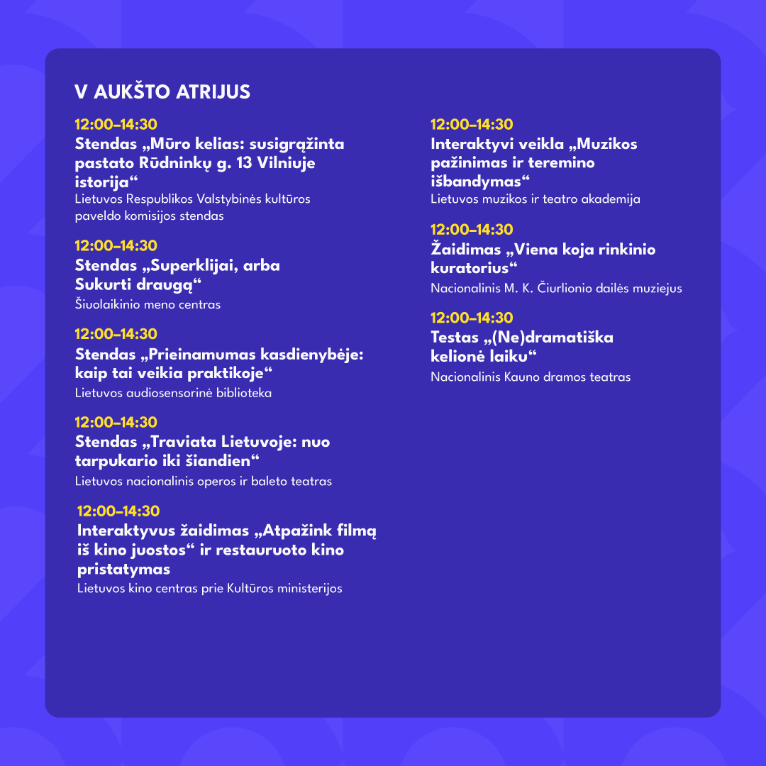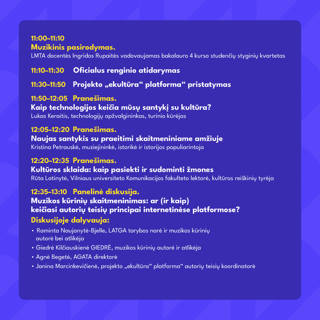 - Įkvepiantys kultūros ekspertų pranešimai ir diskusijos;